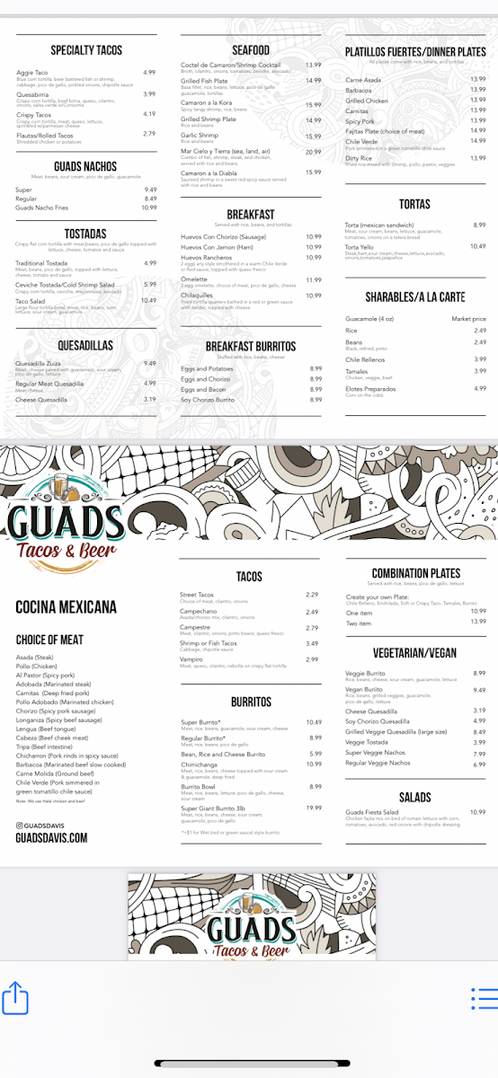Guads Tacos & Beer Menu